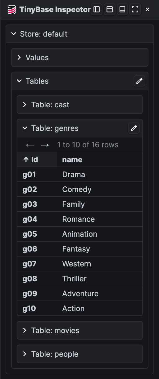 TinyBaseAPIui-svelte-inspectorFunctionsFunctionsInspectorEssentialThe Inspector component renders a tool which allows you to view and edit the content of a Store in a debug web environment. Read more.